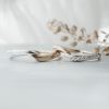 Men’s(下):Pt950×K18シャンパンゴールド 最大幅3.5mm バック幅1.8㎜ 厚み平均2mm Lady’s(上):Pt950×K18シャンパンゴールド 幅平均3.5mm バック幅1.8㎜ 厚み平均2mm ホワイトダイヤ9石 0.066ct