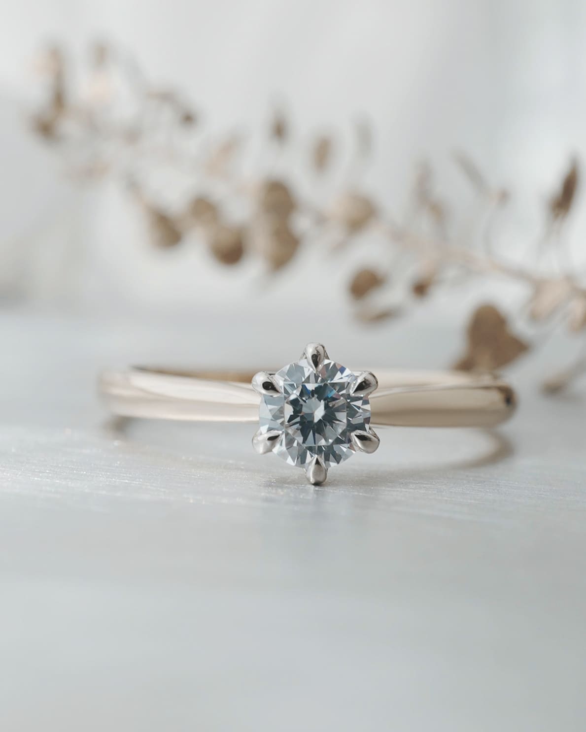 K18シャンパンゴールド×Pt950 幅平均1.9mm 厚み平均1.4㎜ センターダイヤモンド0.3ct前後