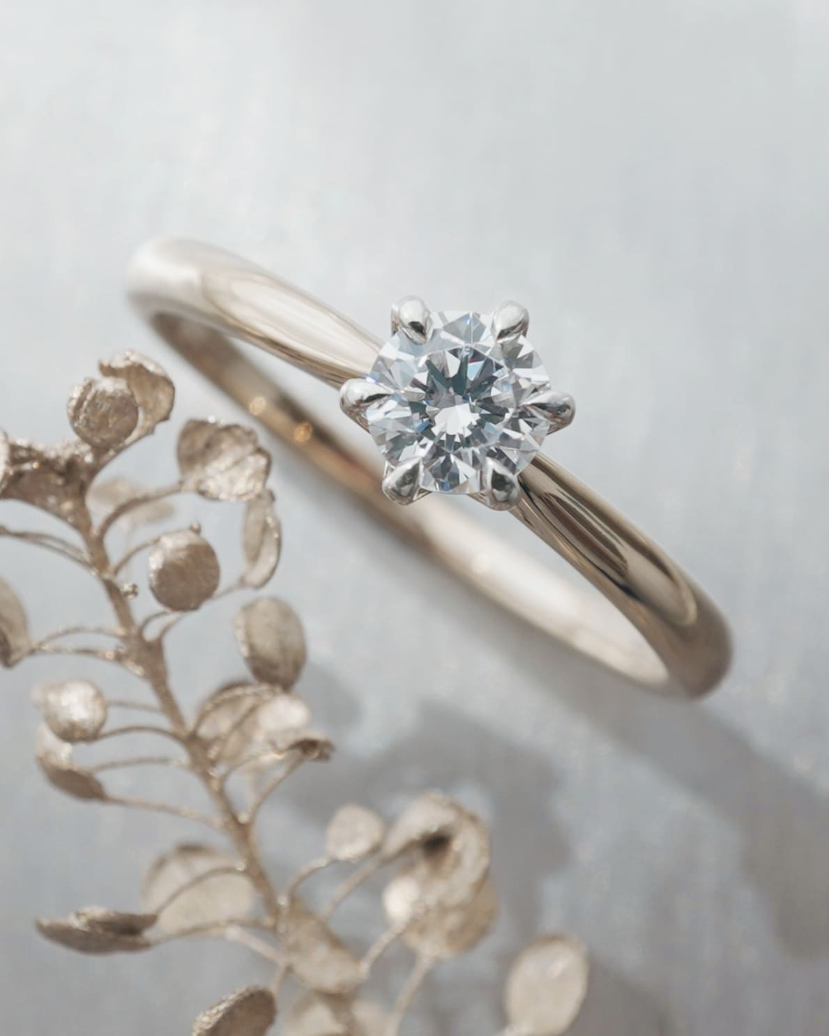 蓮の花びらがセンターダイヤモンドを包み込むデザイン 石座が蓮の花の蕾から開花する瞬間の形に見える立体的な造形美 爪部分も雫型に整え、細部まで拘っています 石座と枠の素材を変えることができます 単素材でも作製可能