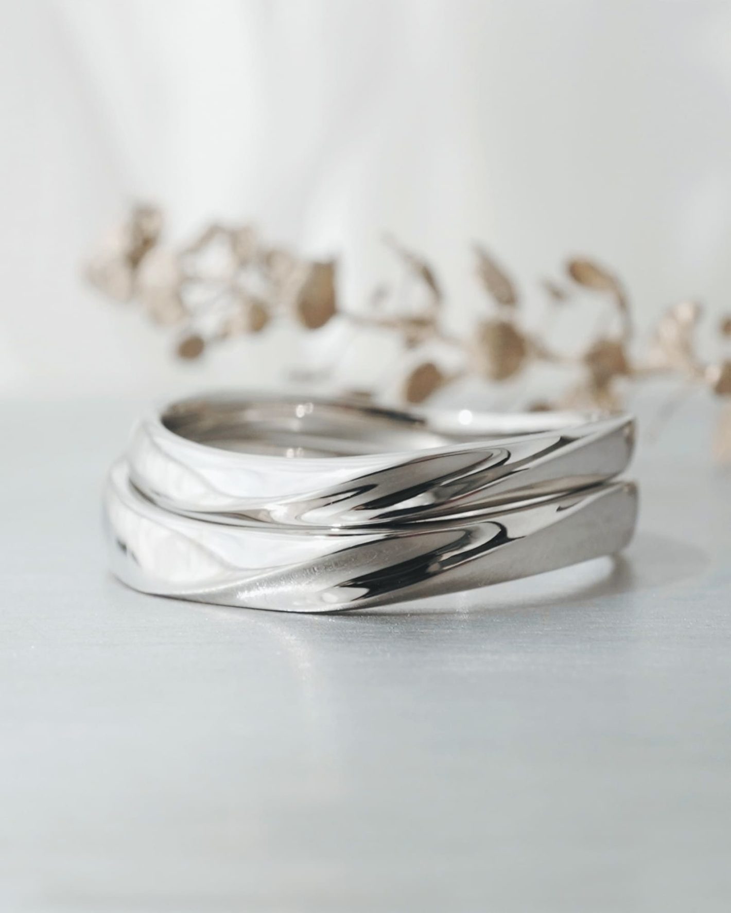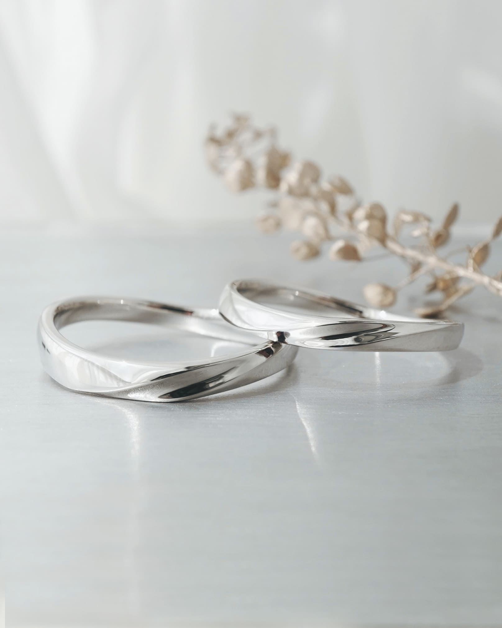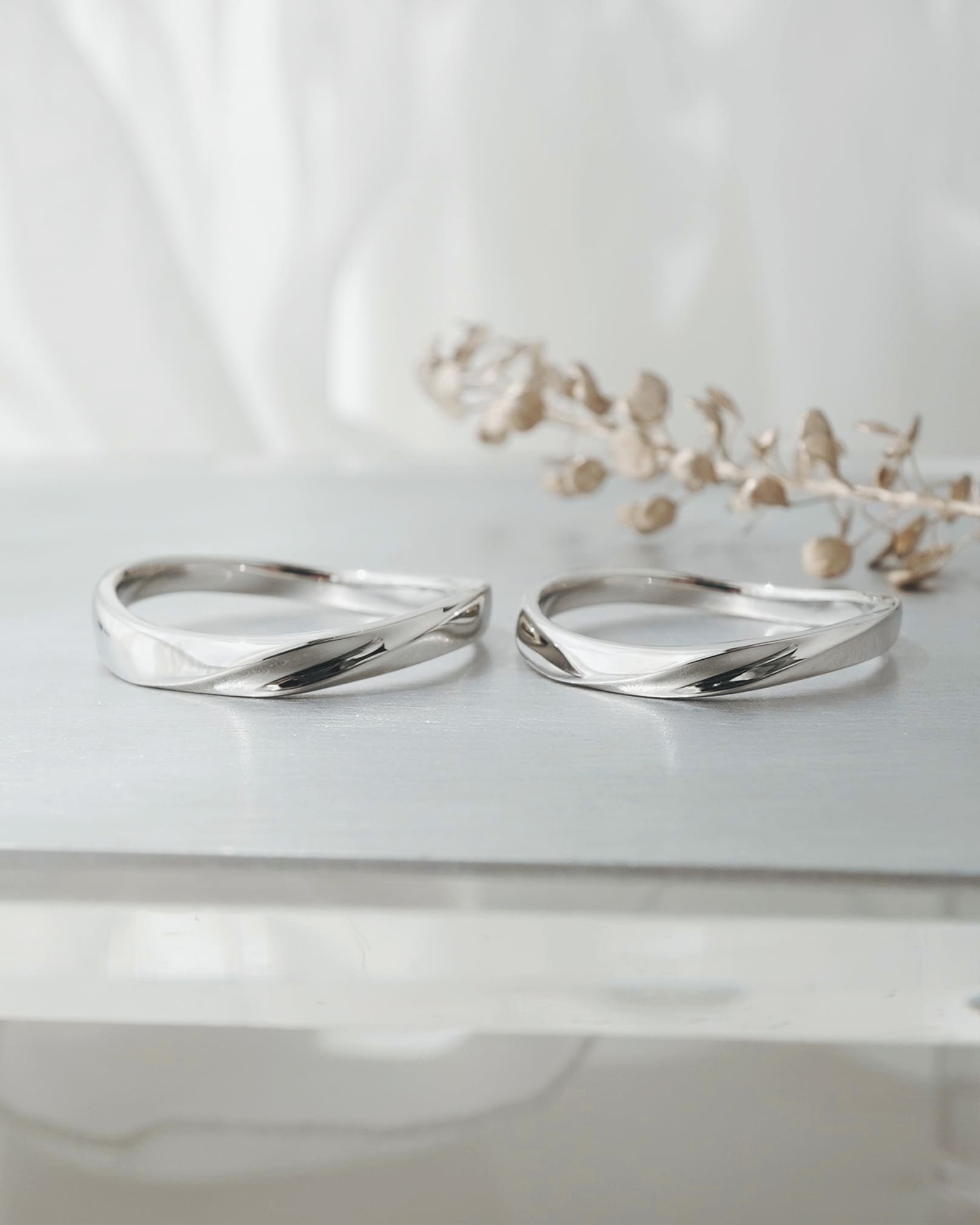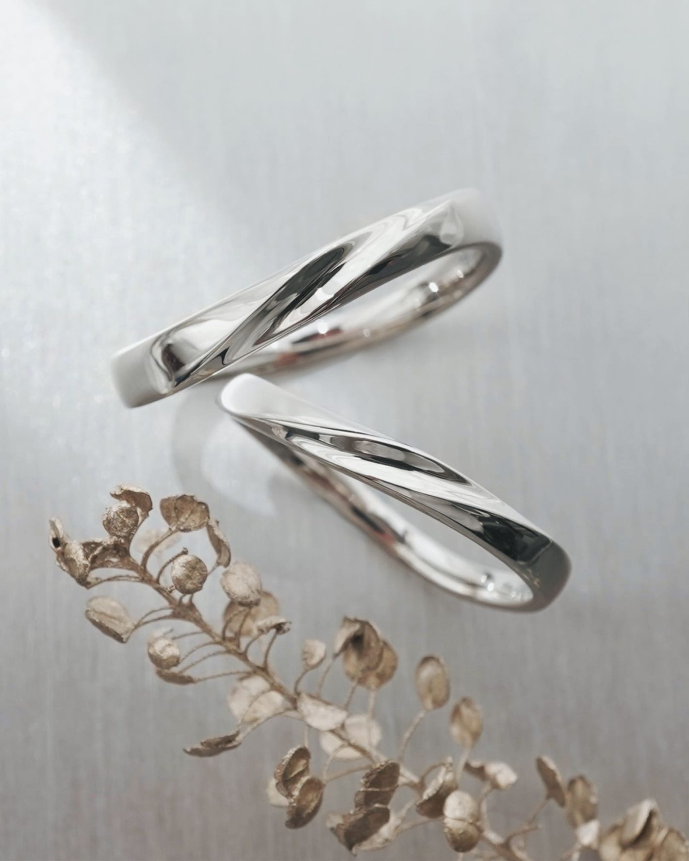 風が縁を結ぶ、ふたりの出会いの運命を大切にする結婚指輪 中央ラインが程よく窪んだデザイン 光に当たるコントラストの魅力を感じてほしいです