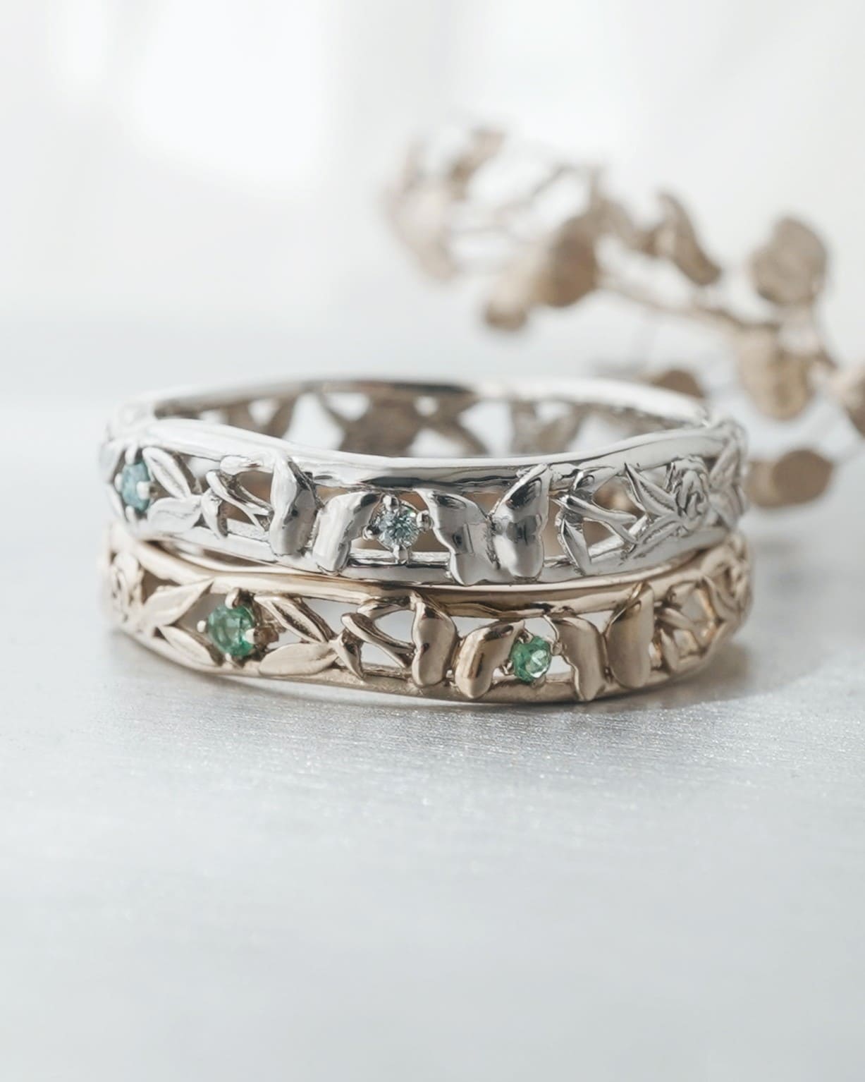 ※誕生石の変更は可能です、1つの指輪に2石の誕生石が留まります
