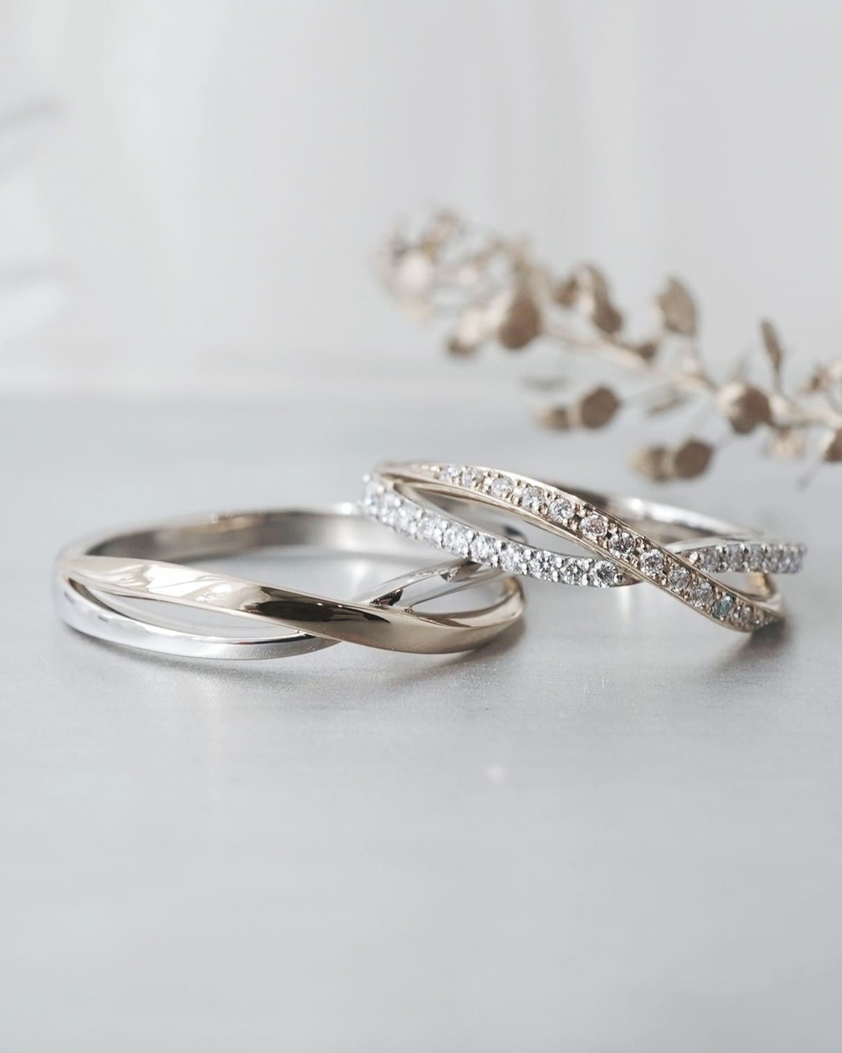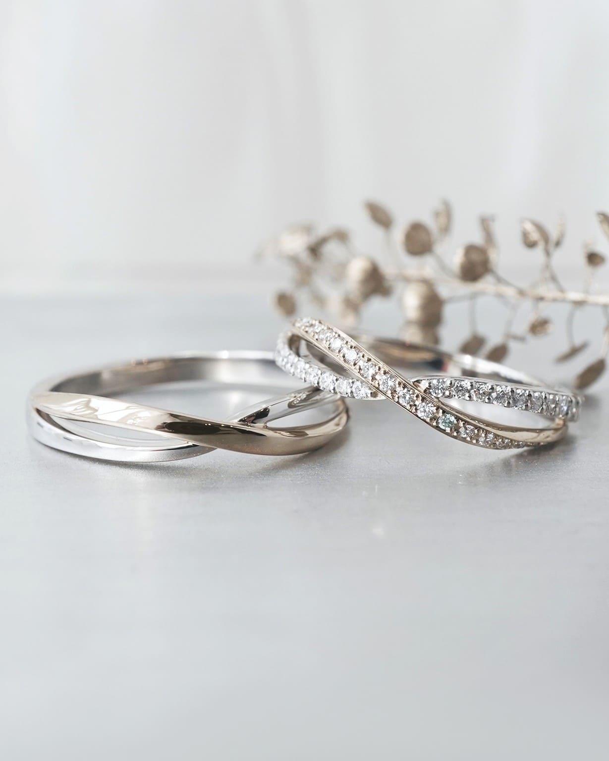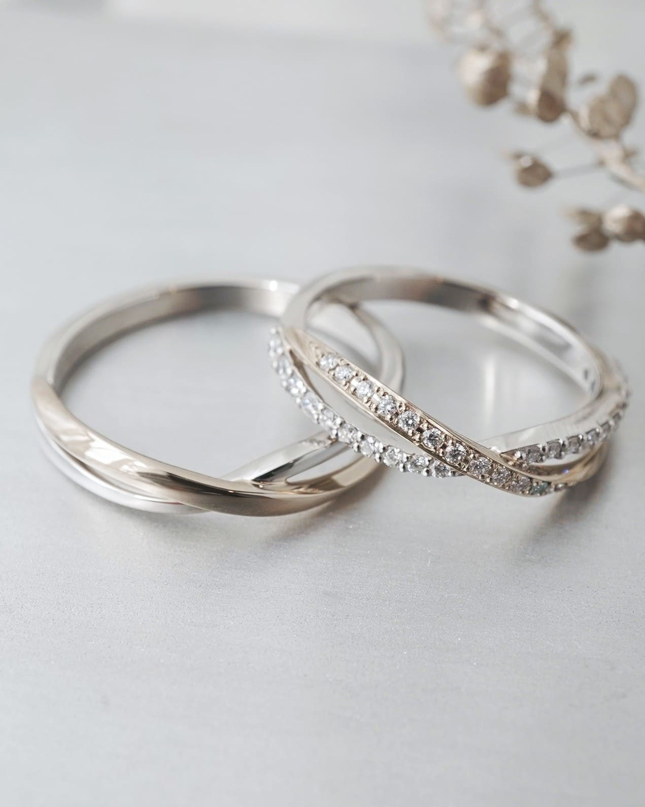 Men’s(下):Pt950×K18シャンパンゴールド Lady’s(上):Pt950×K18シネマゴールド